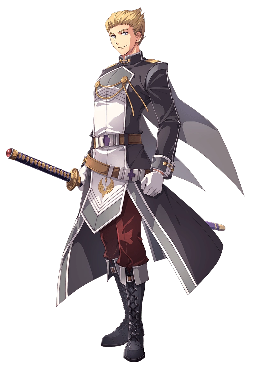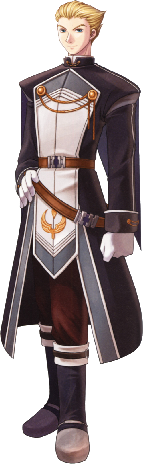 A promising young leader in the Royal Army of Liberl. He founded the military's Intelligence Division and became its first commander. A smart and capable rising star within the Royal Army, Richard enjoys immense popularity among both his subordinates and the kingdom's people. He greatly values the Bracer Guild, understanding the importance of its collaboration with the military. Despite his accomplishments, he remains humble, and never allows his position to inflate his ego.[1]