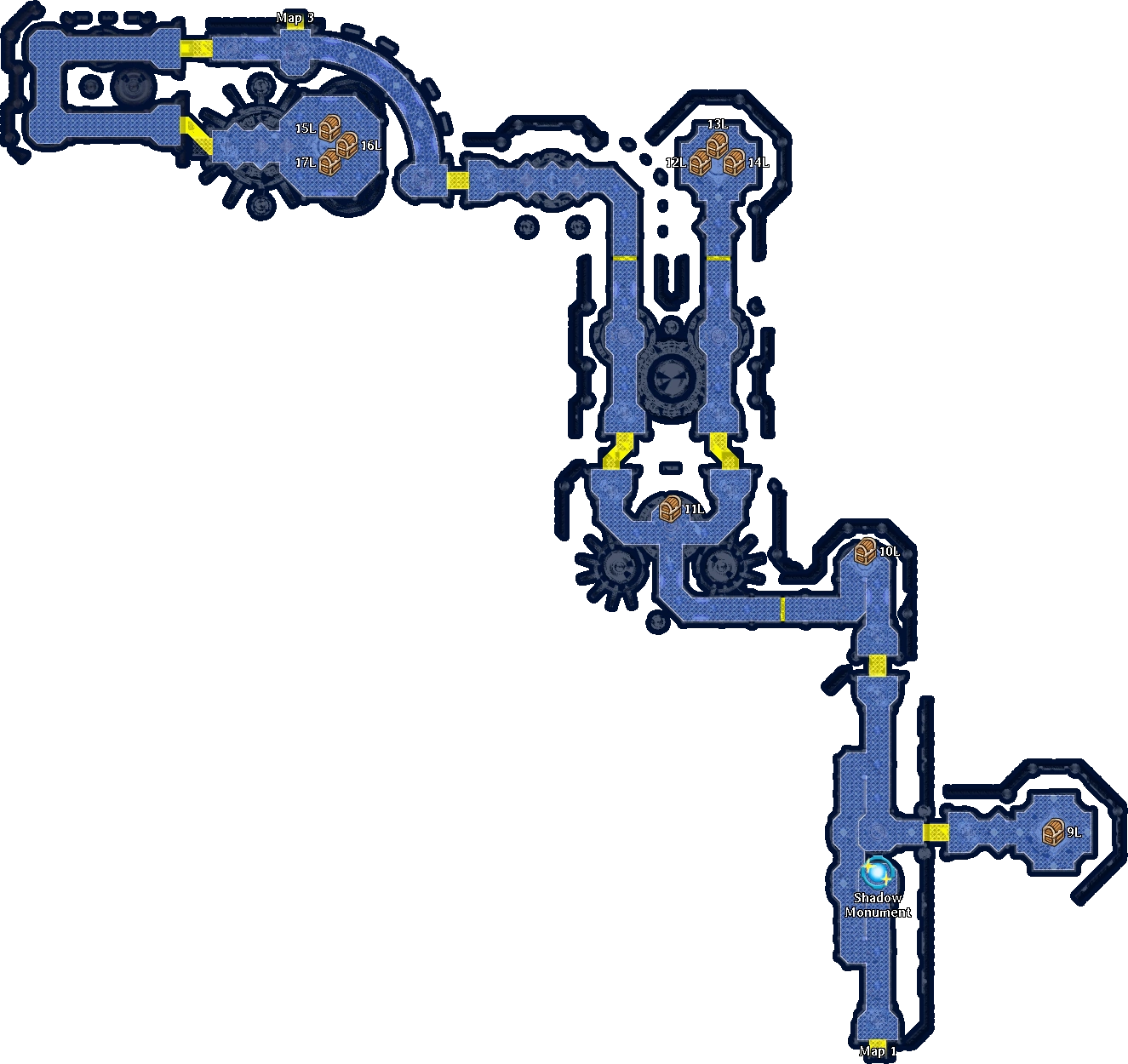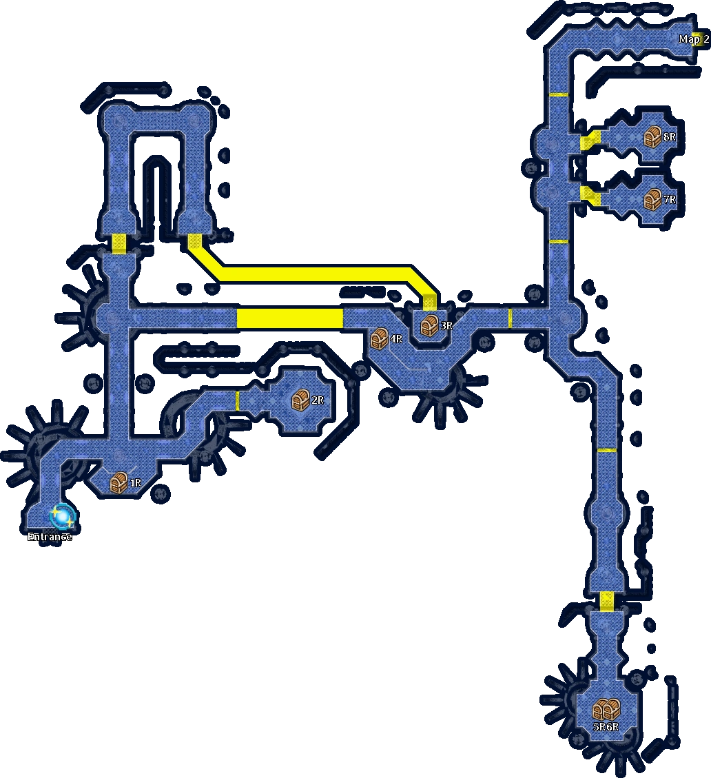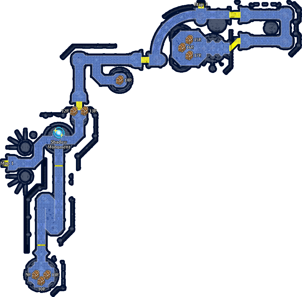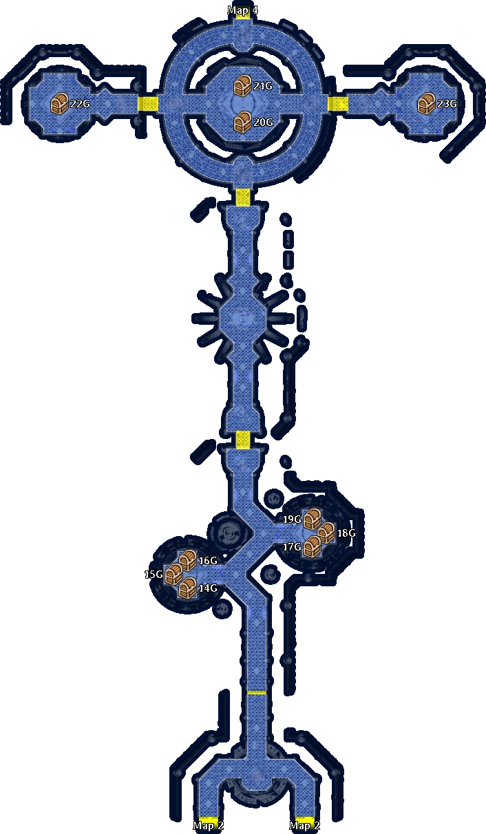 - ↑ 1.00 1.01 1.02 1.03 1.04 1.05 1.06 1.07 1.08 1.09 1.10 1.11 1.12 1.13 1.14 1.15 These chests contain different armor depending on the members of the active party. In total, these contain
