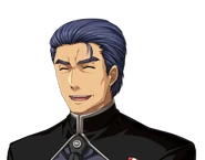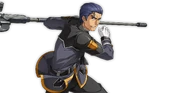 Douglas is a middle aged man with swept back blue hair and brown eyes. He wears a version of the CGF uniform- a black blazer and trousers - with a golden trim. He also wears white gloves. Douglas uses a stun halberd in combat.