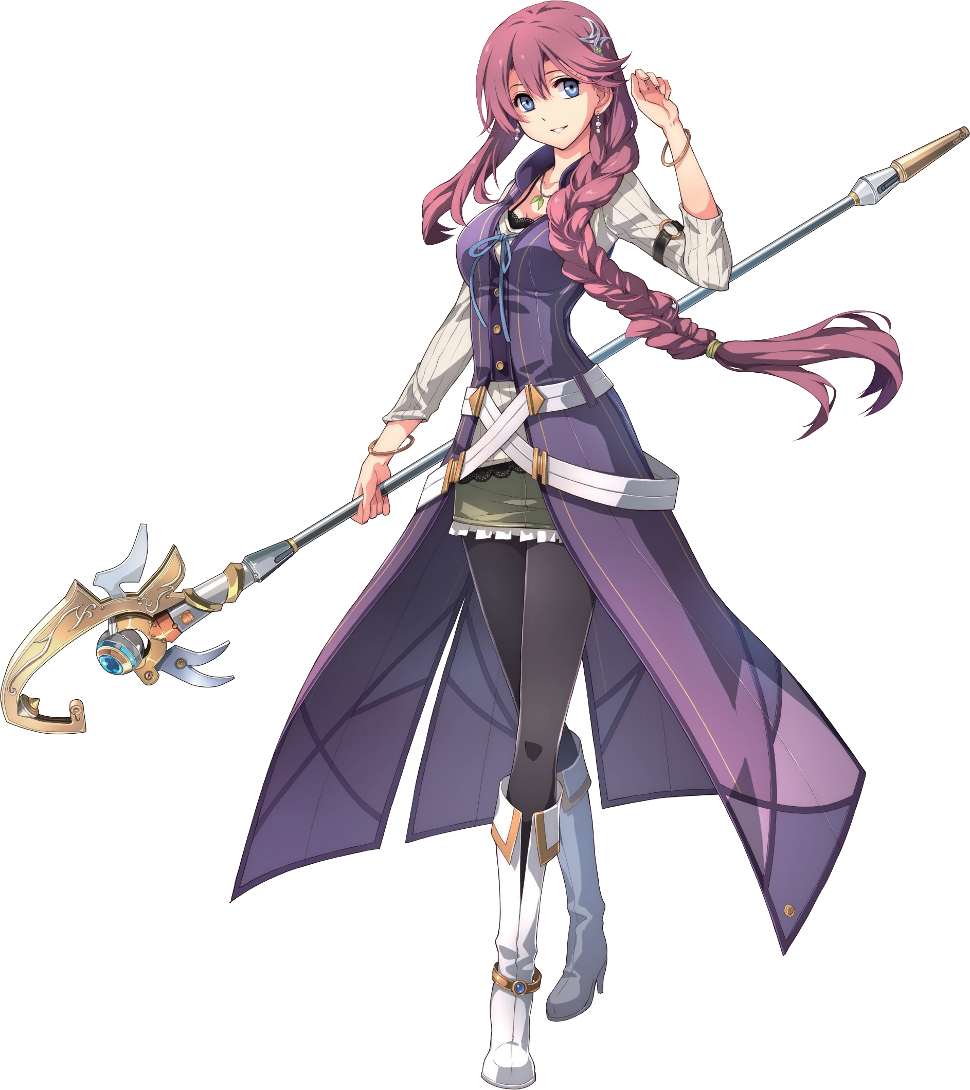 A descendant of the ancient Hexen Clan and a member of Class VII. Though she lost her mother at a young age, she has the elder of the witches, Roselia, as a grandmother figure, and Vita Clotilde as an older sister figure. She revealed her true nature as a witch during the Erebonian civil war, then continued to support her friends with her impactful orbal arts. After the disaster passed, she and her familiar traveled across the continent to investigate the septium veins of Zemuria, the source of so very many anomalies in recent years.[5]Appearance[]