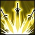 Locks onto the nearest enemy and slashes all enemies in a straight line, dealing 200% of ATK damage and preventing EP recovery for 2 seconds. While imbued with Golden Aura, the damage is increased by an additional 40%.