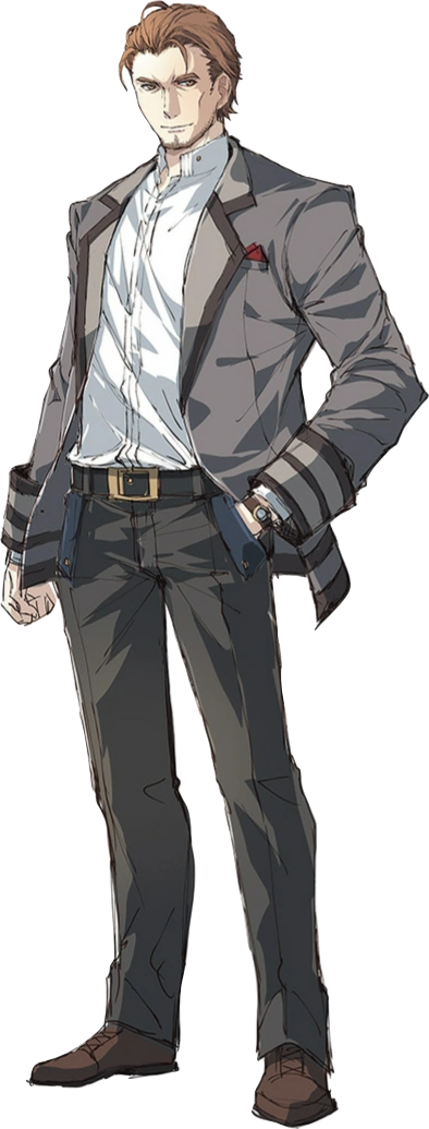 The current president of Calvard, whose stylish attire and good looks, along with his knack as a public speaker and image as being highly reliable have made him extremely popular with the citizenry. Although some pundits object to his habit of making swift decisions and fanning the flames of internal strife while waving it off as 'healthy competition,' his guard is impenetrable, and he always seems to have a prepared counterpoint to anything brought up against him. He is also Agnès' biological father, and while he seems to know something about the prototype orbments that she's searching for, he hasn't done anything to stand in her way, leaving his intentions a complete mystery. It would seem that he is also responsible for brokering a 'mutual non-interference' pact with the Society of Ouroboros in the interest of furthering some secret plan. Whatever his goal is, it involves the largest manufacturers and highly-respected academic minds in the Republic...[2]