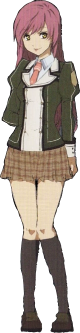 Vivi has long pink hair stretching halfway down her back, and wears a tiny, mischievous smile. She is Linde's identical twin. As a student, Vivi wears the standard green commoner uniform. During her time working for the Imperial Chronicle, Vivi wears jeans and knee-length cowboy boots alongside a striped blue button shirt with a sleeveless jacket. A press lanyard hangs around her neck. She also appears to have glasses which he wears suspended in her hair.